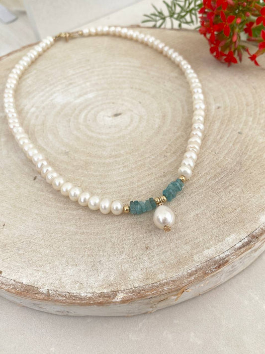 • שרשרת מילי | צ'וקר פנינים תליון טיפה