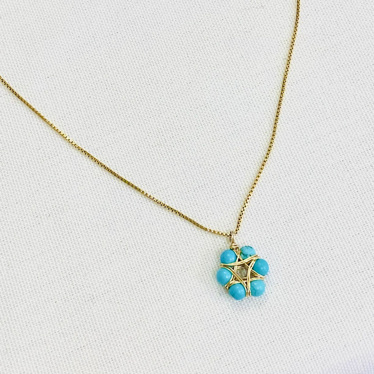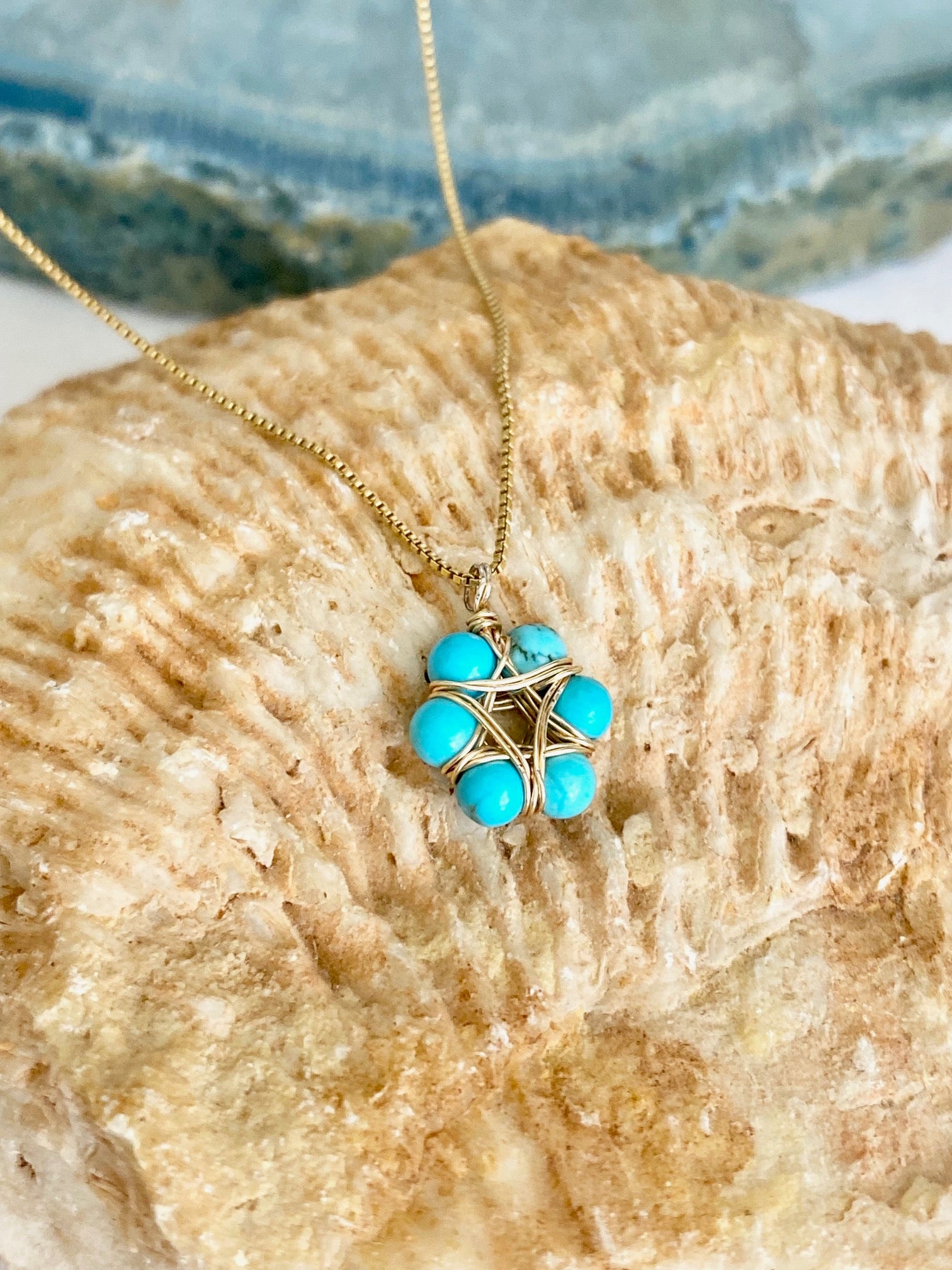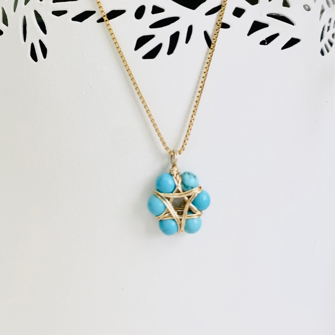 .שרשרת אבני טורקיז עם ליפוף בצורת מגן דוד עבודת יד