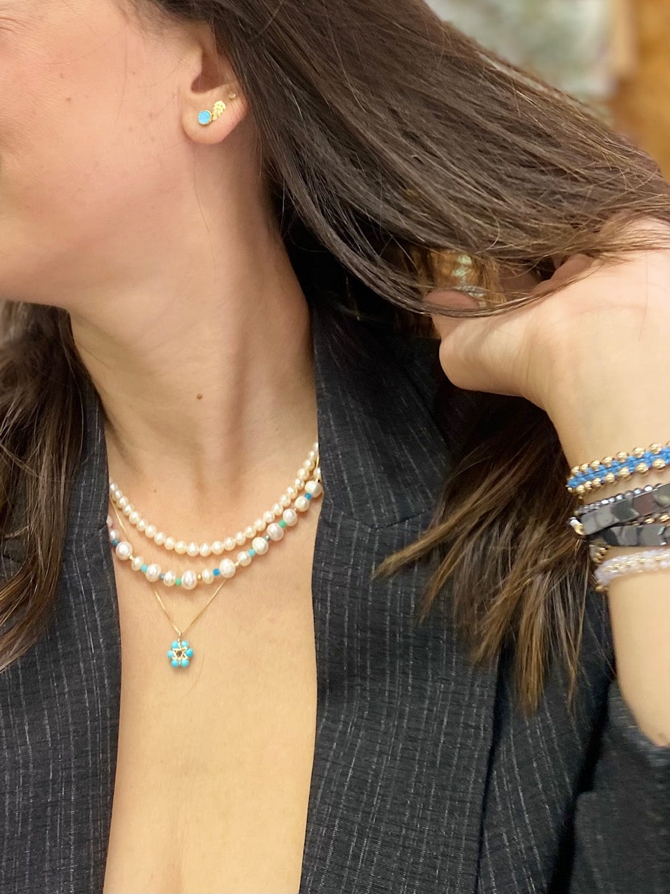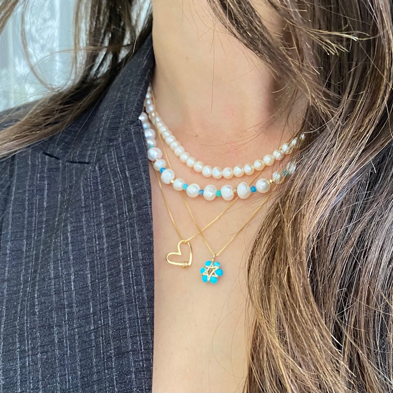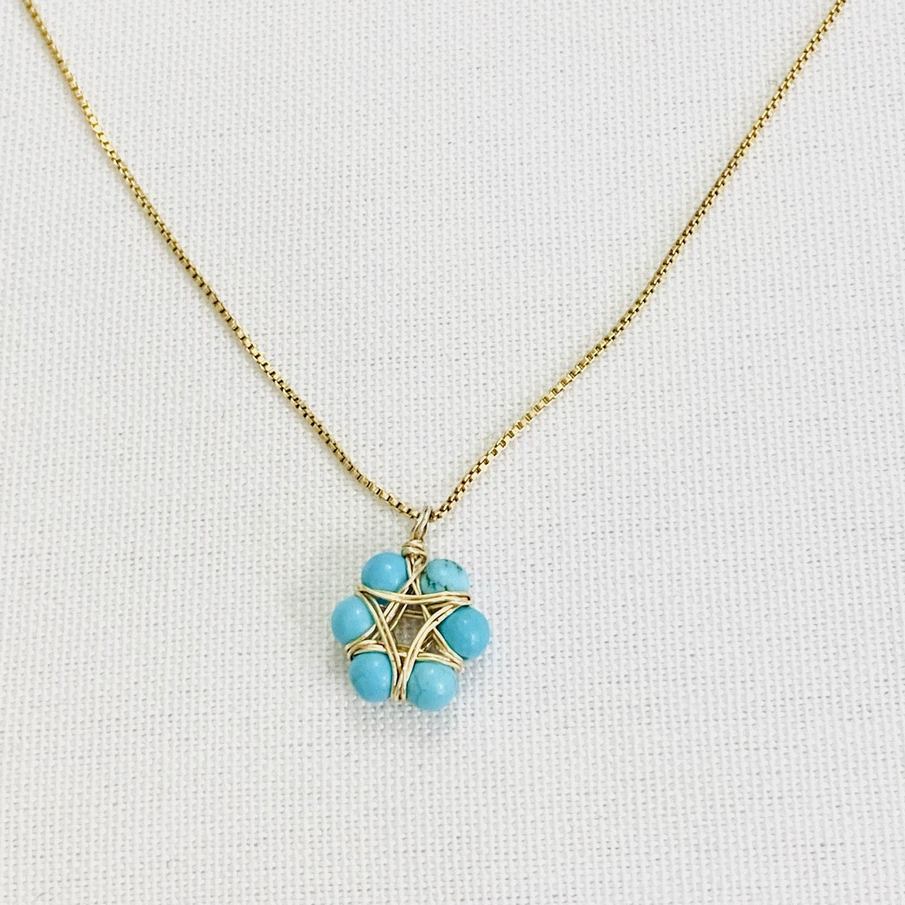 .שרשרת אבני טורקיז עם ליפוף בצורת מגן דוד עבודת יד