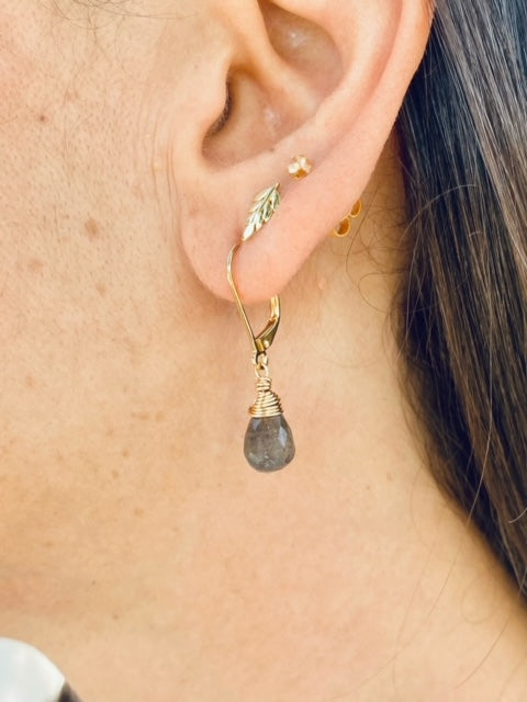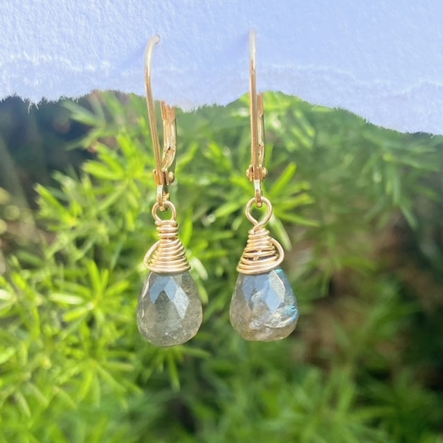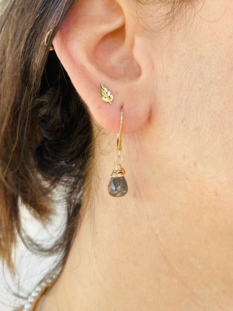 עגילי אבן לברדורייט מלופפת בחוט זהב