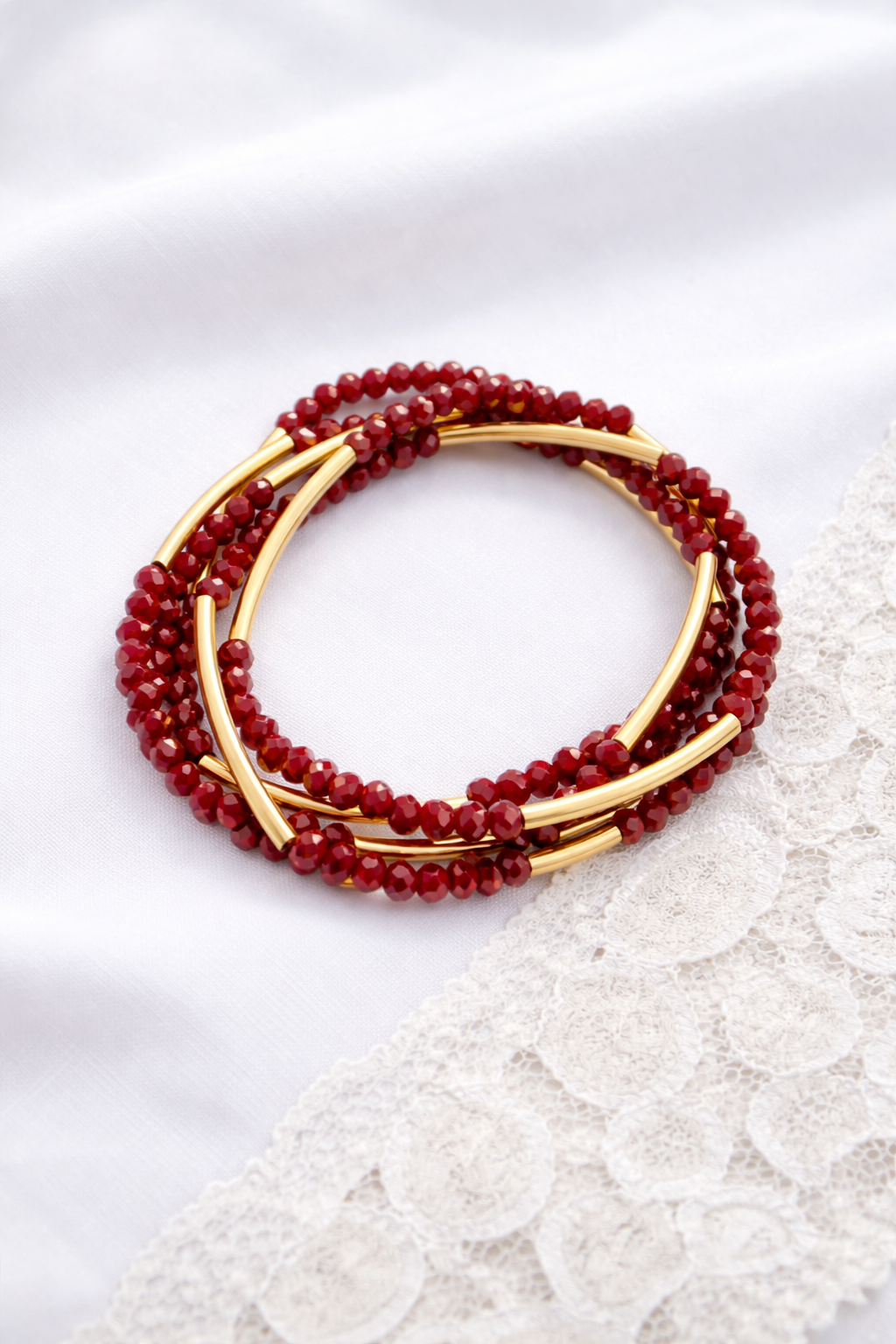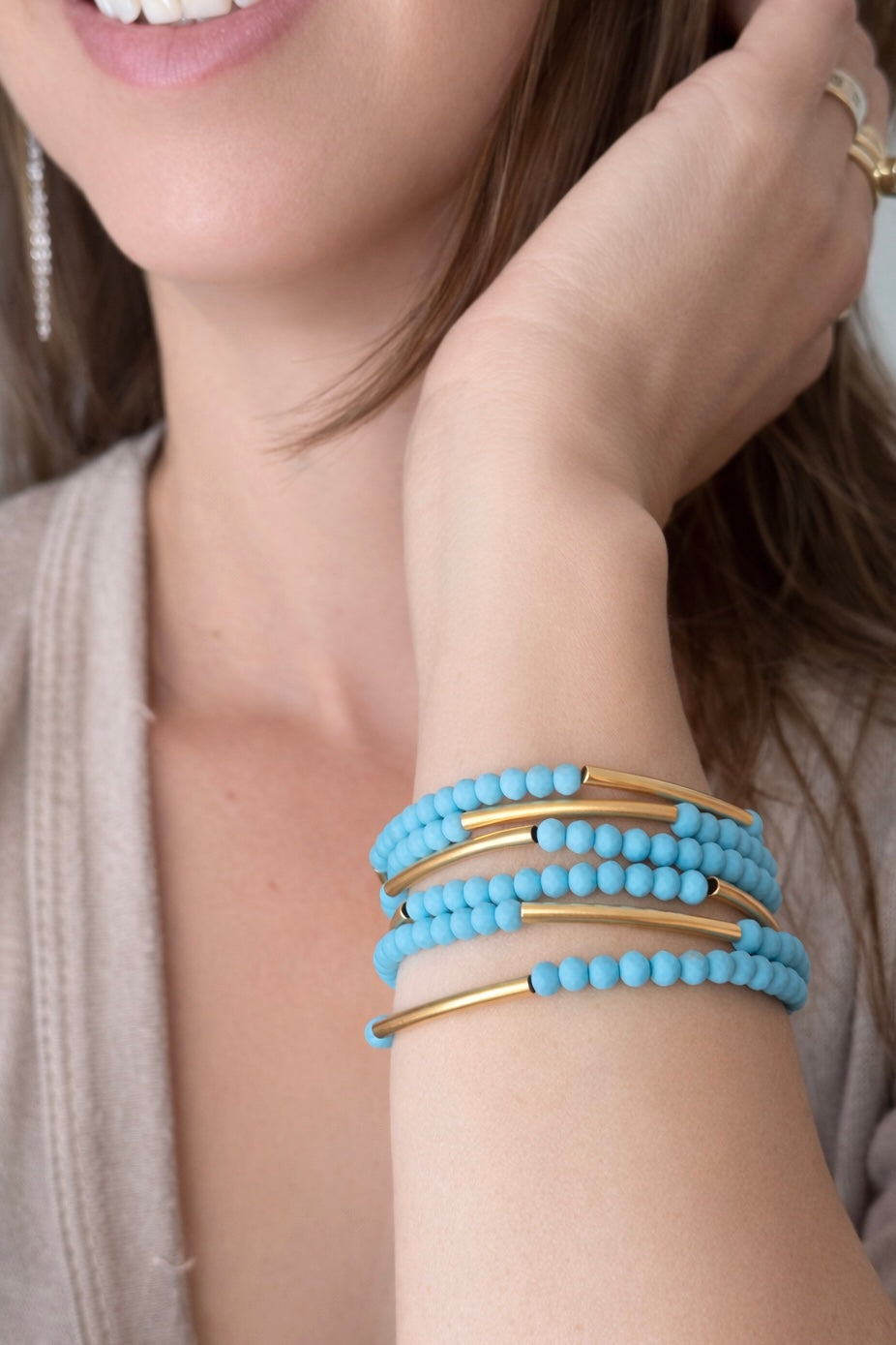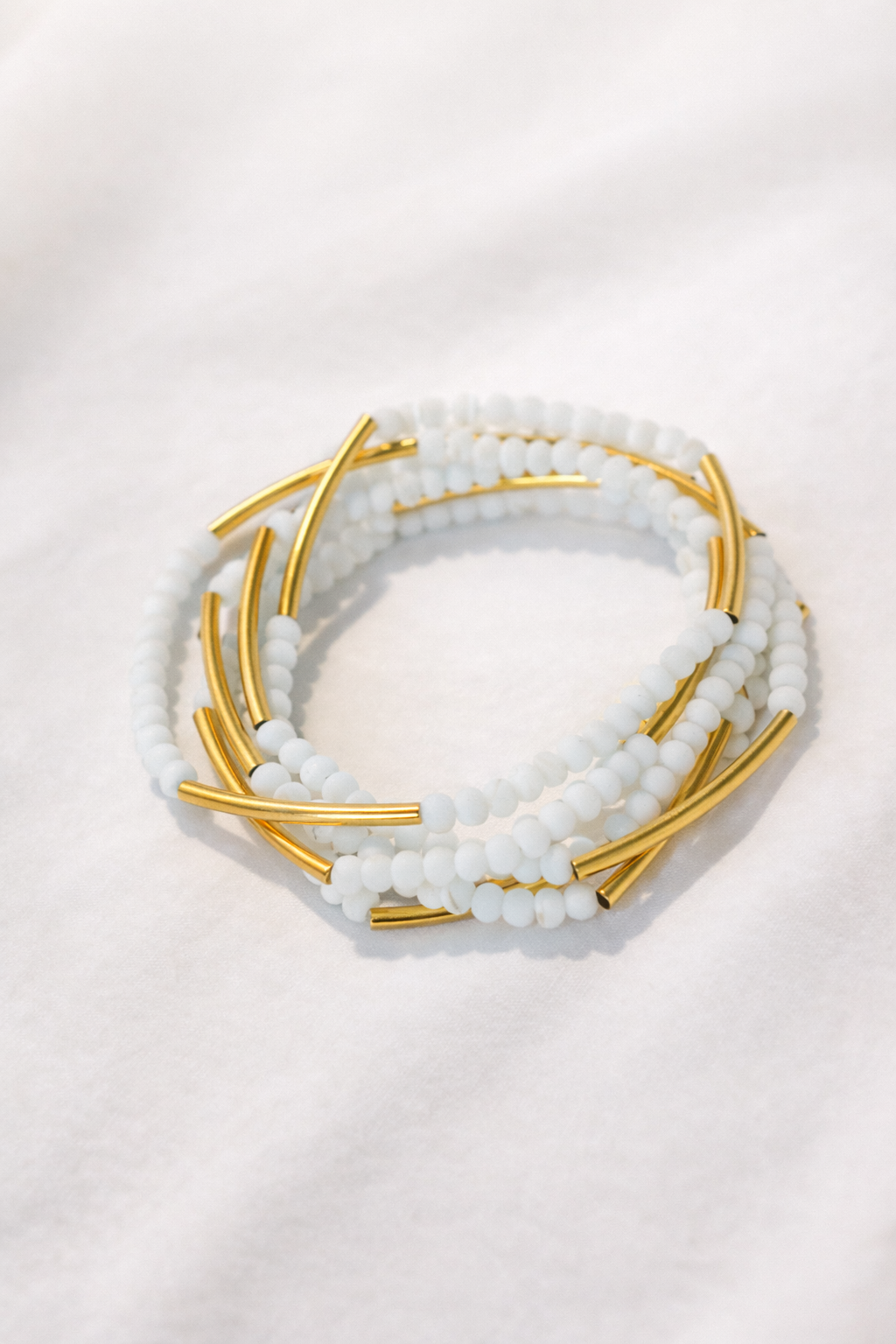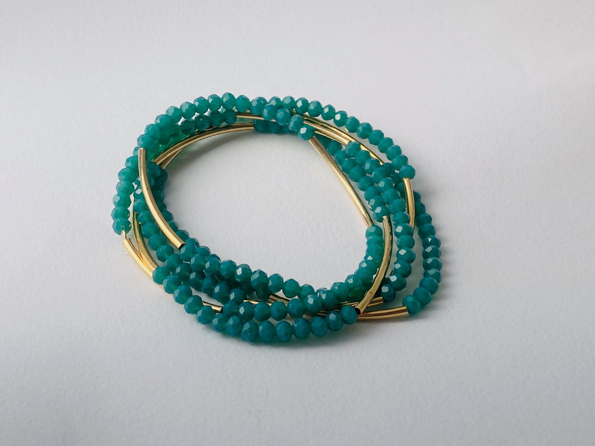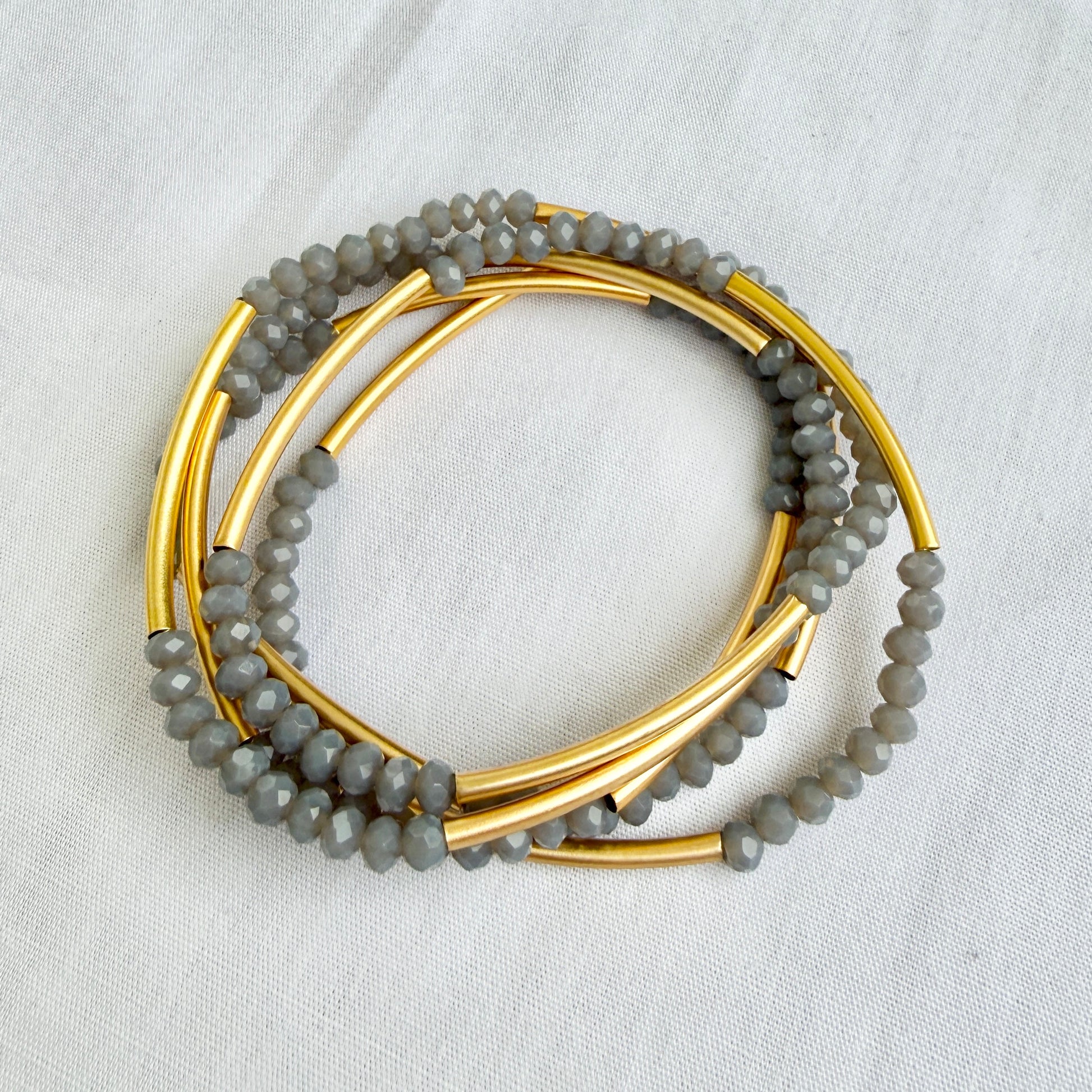 צמיד מתלפף ללא סוגר בעיצוב אלגנטי ורב שימושי. שילוב של חרוזי קריסטל קטנים עם צינורות בציפוי זהב בגימור מט יוצר מראה נקי, מאוזן ועשיר בפרטים. המבנה הגמיש מאפשר ענידה נוחה כצמיד מתלפף או כשרשרת ארוכה, ומתאים לשימוש יומיומי וגם לשכבות.