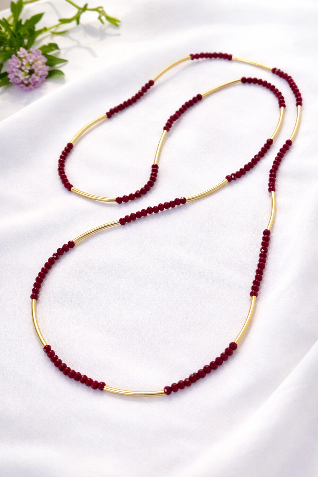חומרים: חרוזי קריסטל 0.4 ס"מ, צינורות ציפוי זהב בגימור מט אורך 3 ס"מ