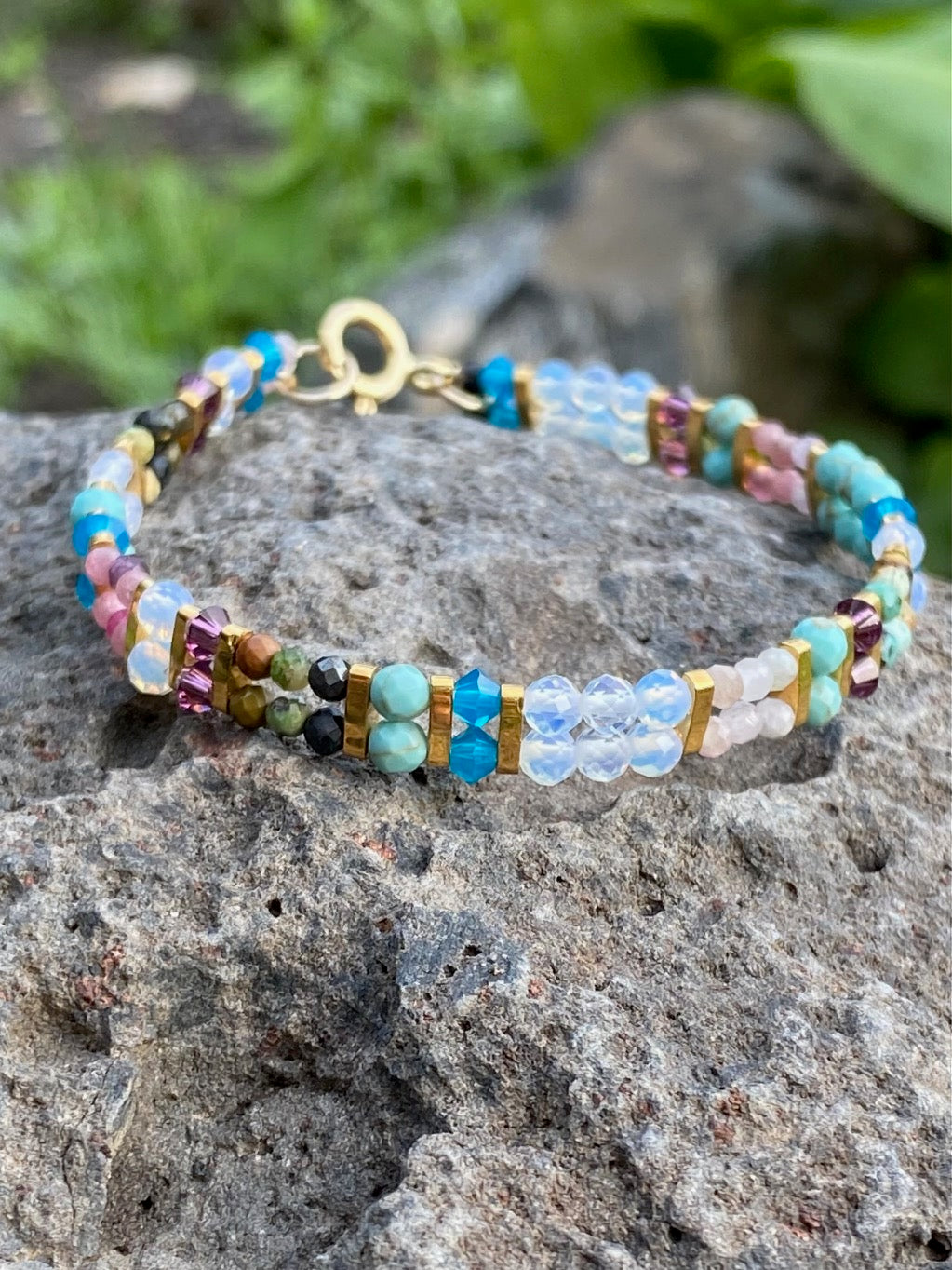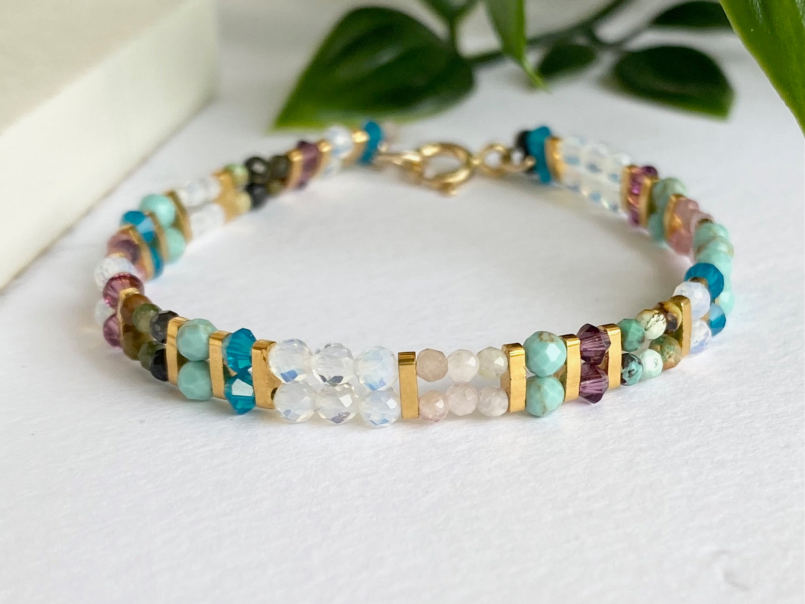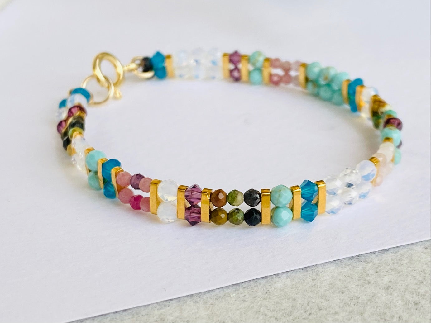 .צמיד משולב אבני חן וחרוזי סוורובסקי