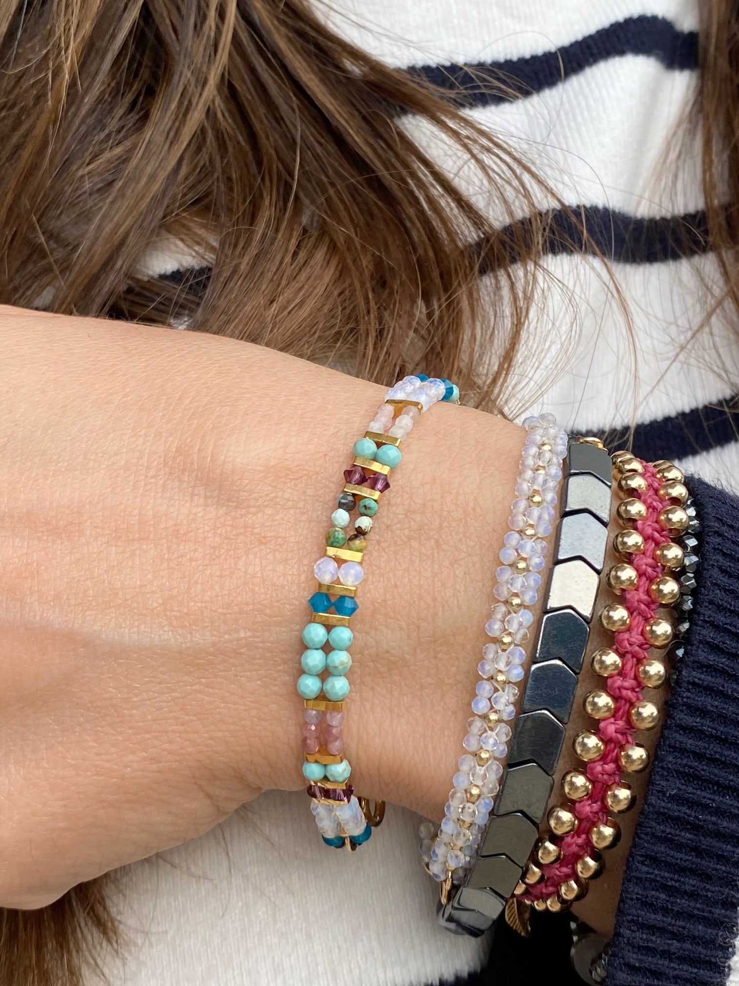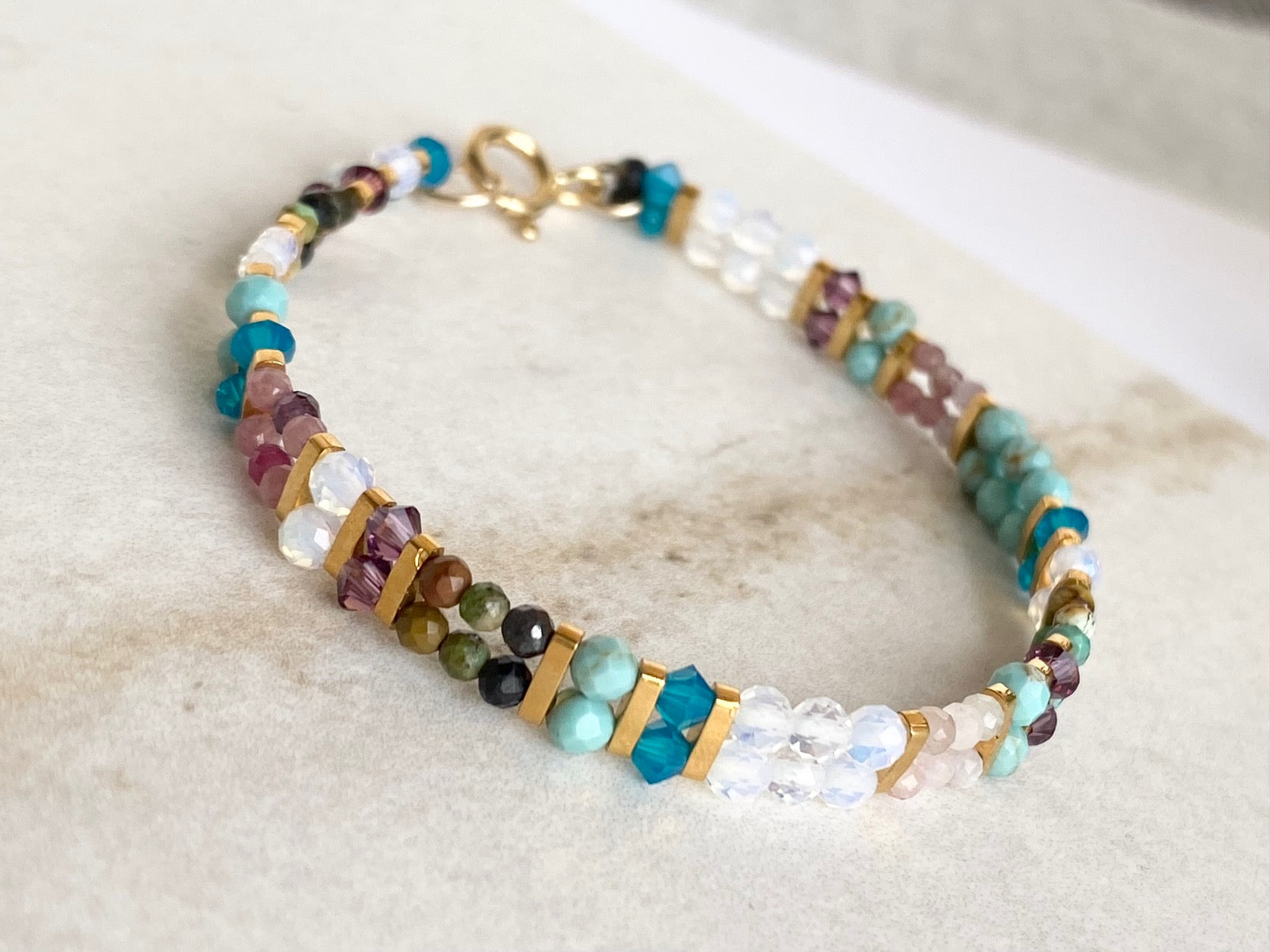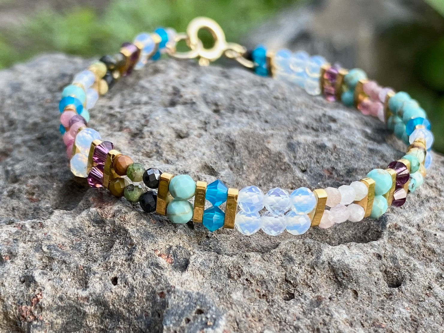 .צמיד משולב אבני חן וחרוזי סוורובסקי