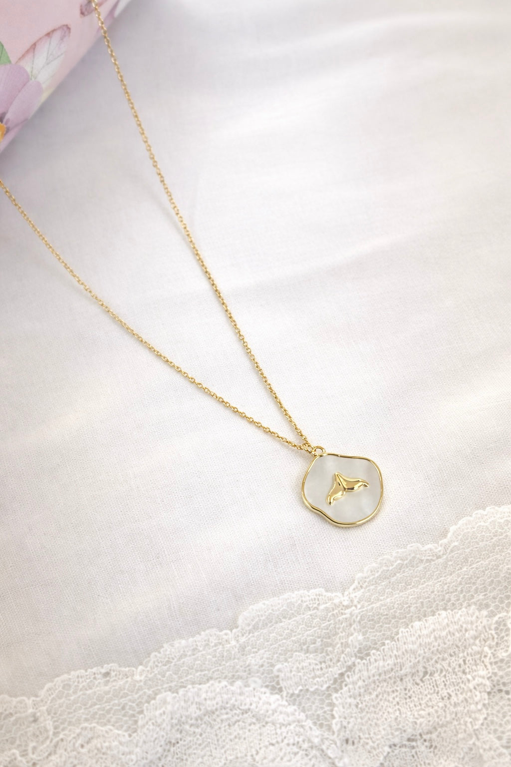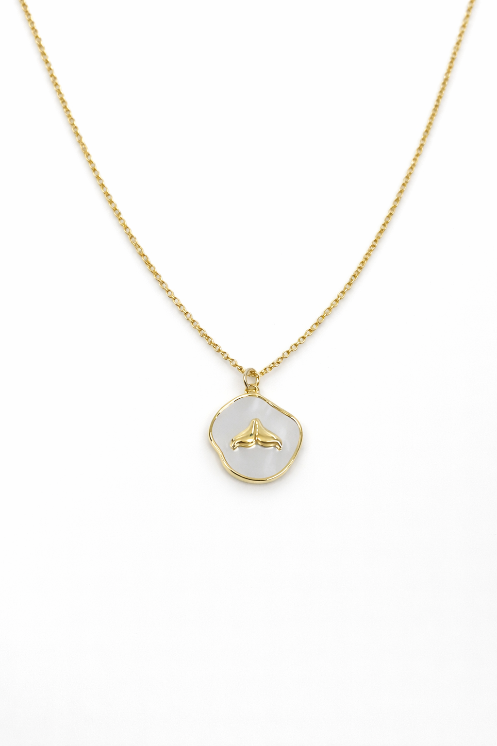 חומרים: תליון צדף סנפיר בציפוי זהב מיקרוני, שרשרת בציפוי זהב מקרוני