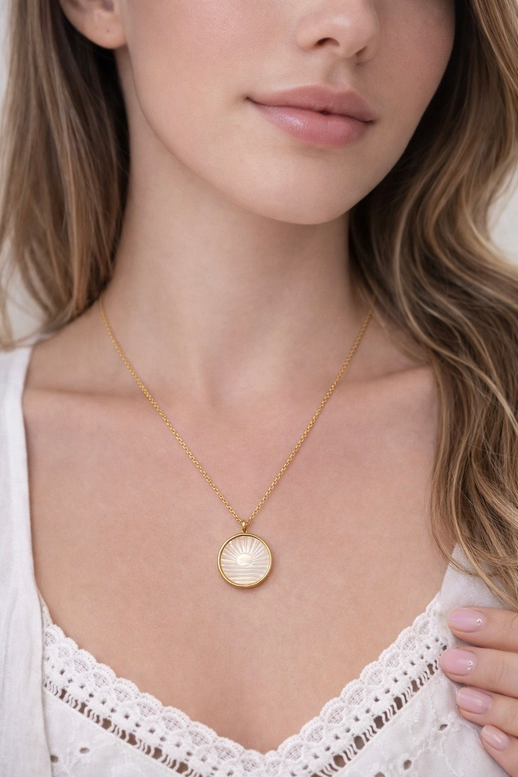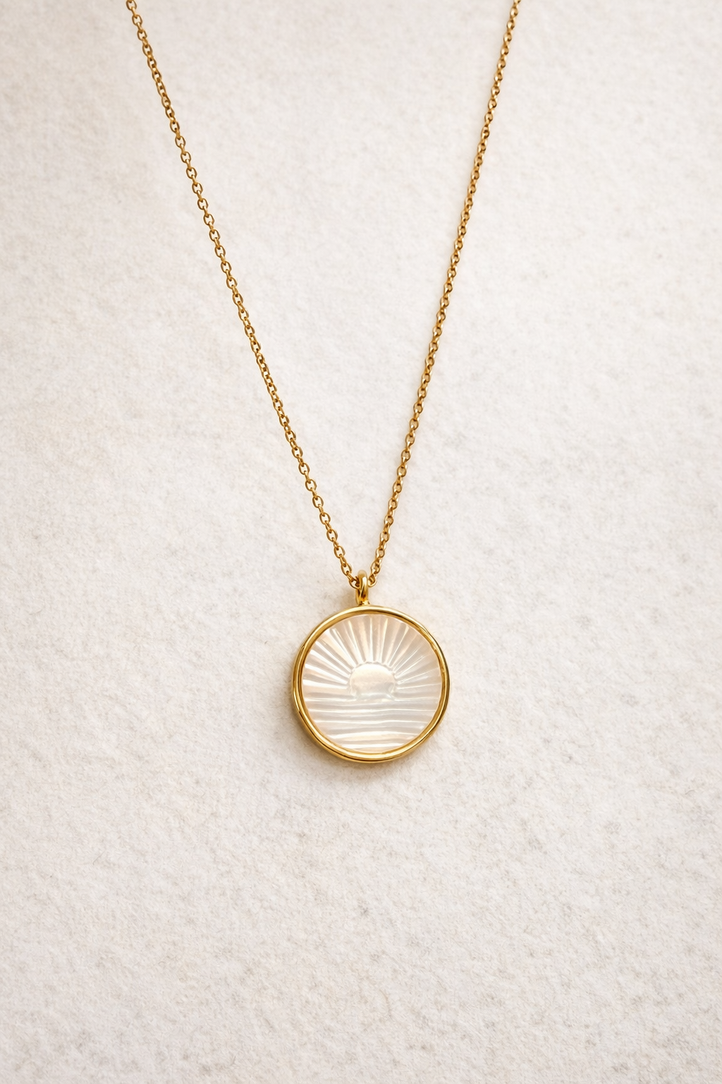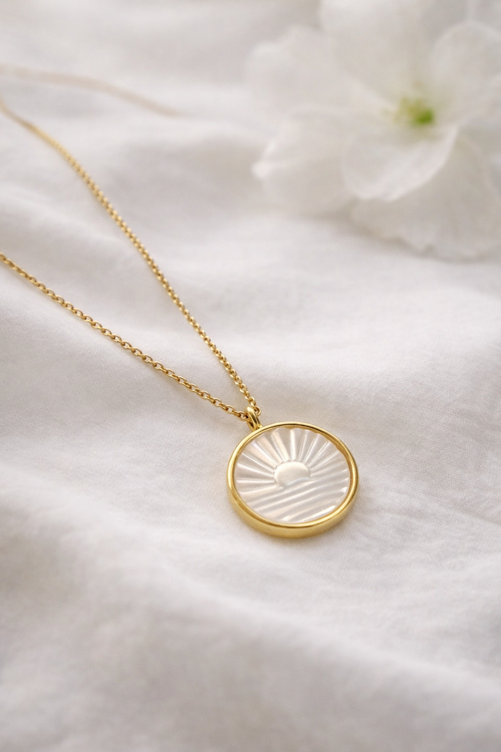 חומרים: תליון צדף שמש בציפוי זהב מיקרוני, שרשרת בציפוי זהב מקרוני